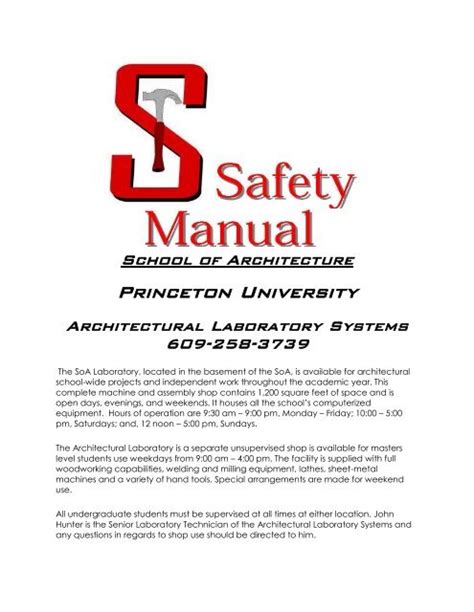 Presently you are looking regarding an Princeton University Safety Manual example that we provide here in some kind of document formats such as PDF, Doc, Power Point, and also images that will make it simpler for you to create an Princeton University Safety Manual yourself. For a better look, you may open a few examples below. All of the examples about Princeton University Safety Manual about this site, we get from several sources so you may create a better file of your own.
